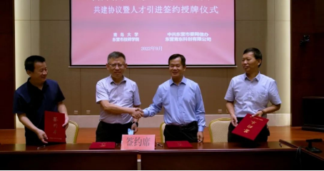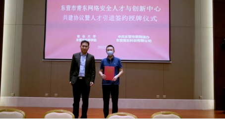 日前,公司与东营市委网信办、东营市技师学院、东营青东科创有限公司签订协议,共建东营市青东网络安全人才与创新中心。公司党委书记潘秋鸿,经理郭振波,信息安全系党支部书记、主任咸鹤群参加了在东营市举行的签约仪式。