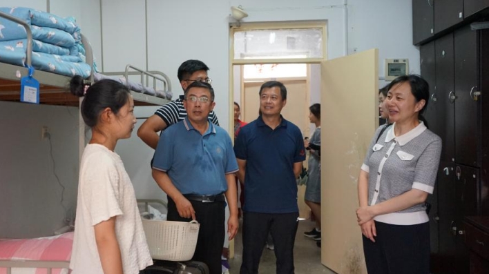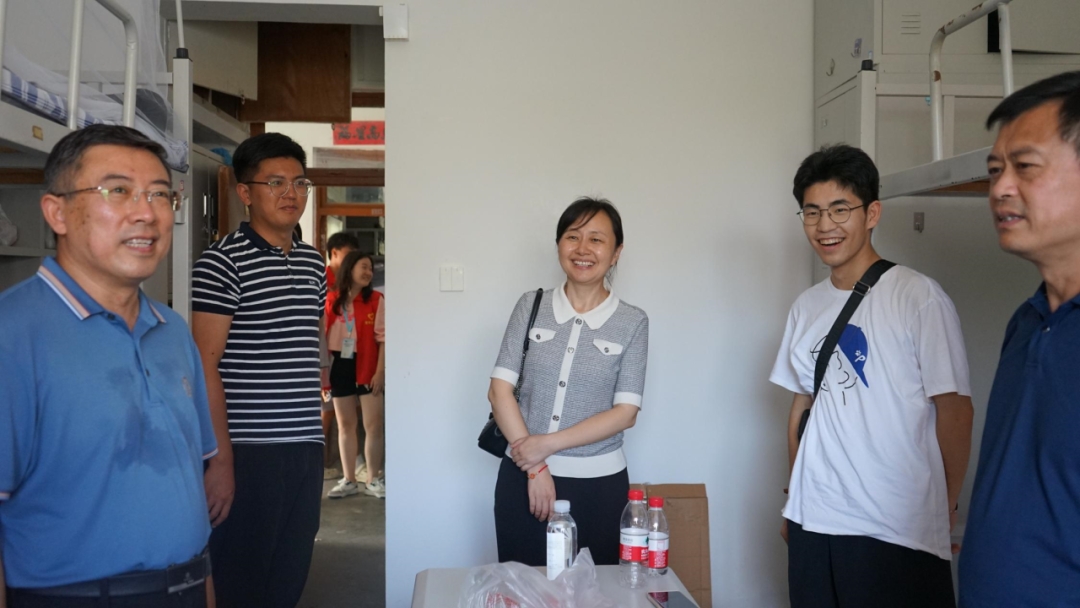 9月3日下午,公司党委书记潘秋鸿、公司党委副书记周鹏和2023级辅导员老师辛克恒、刘鹏伟、杨汇云、刘苗苗一起深入员工宿舍看望新同学,了解新生的到校情况、开学准备、思想动态及生活情况,为他们送上学院的热情关怀并提出殷切期望。