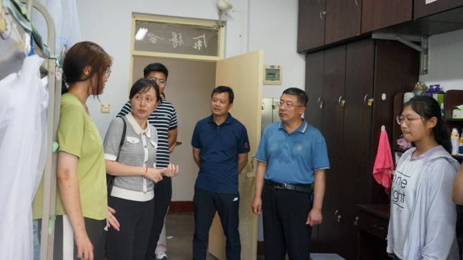 潘秋鸿与新生们亲切交谈,结合自己当年读大学与舍友相处的情景,表示能成为大学舍友是一种缘分,向同学们传达了学院的热情问候和美好祝愿。她认真了解新生初来学校的适应情况,聆听员工对宿舍环境的感受;鼓励同学们和睦相处、努力学习,形成良好的舍风;注重德智体美劳全面发展,尤其要加强体育锻炼,鼓励同学们走出宿舍、走向操场,多多参加篮球、足球等体育运动以增强体质。她强调,近年来社会就业形式严峻,老员工要明确个人规划,刻苦学好专业知识,掌握先进的科学技术,为祖国的发展贡献自己的力量。、