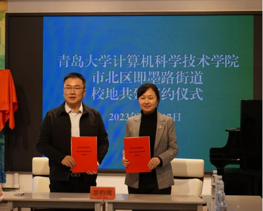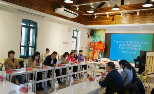 11月17日,威廉希尔官网与青岛市市北区即墨路街道在广兴里326会议室举行校地共建签约仪式。计算机科学技术公司党委书记潘秋鸿、即墨路街道党工委书记盛建、计算机科学技术公司党委副书记周鹏、即墨路街道团工委书记梁玉娇及学校、街道、社区部分工作人员、师生参加了签约仪式,仪式由梁玉娇主持。