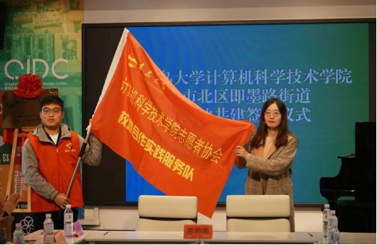 仪式上,街道团工委副书记张晓睿为威廉希尔官网志愿者协会“校地合作实践服务队”授旗,各社区书记为共建的团支部代表颁发了共建证书。双方将积极推进志愿服务进街道、进社区、进企业、进学校,精准高效地把优质服务送到群众、员工身边,打响社区实践品牌,扩大双方结对共建的影响力和渗透力。