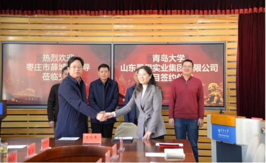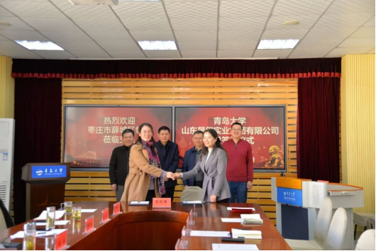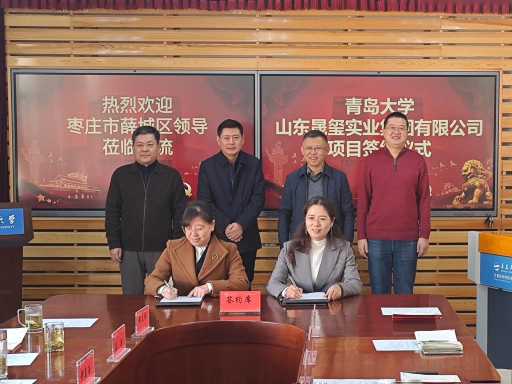 11月30日上午,薛城经济开发区管委会副主任谢刚,山东晟玺实业集团有限公司董事长郝东浩、副总经理李建华,枣庄恒嘉智能制造有限公司董事长王冉、总经理陈乃坤、运营部主任郝立顺一行6人来公司交流签约。公司党委书记潘秋鸿、经理郭振波、副经理王国栋、社会服务促进中心主任杨熙鑫及相关教师出席签约仪式并参加座谈。