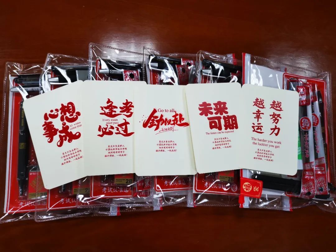 12月26日,2021年全国研究生考试初试将拉开帷幕。临近考试,学院为全体考研学子准备了装有签字笔、涂卡笔、美工刀、胶棒等的“福袋”,并为大家打印了考生健康承诺书,帮助大家安心上考场。学院还特别制作了印有“全力以赴”“心想事成”“未来可期”等祝福语的卡片赠送给考研学子,以此表达学院对考研学子最真挚的祝福。