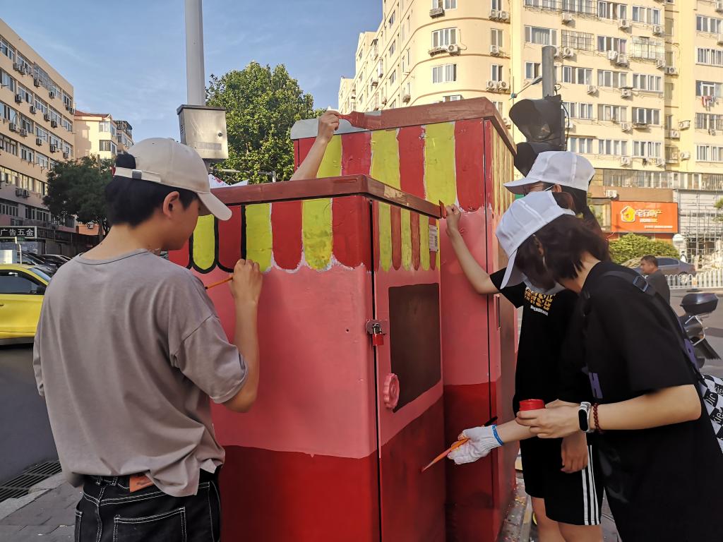 近日,公司数字媒体专业员工受大港街道新时代文明实践所邀请,以“迎接建党一百周年”“文明出行”“节约粮食”等为主题,为长春路、华阳路周边配电箱绘制彩色“新衣”,助力全国文明典范城市和国家卫生城市创建。